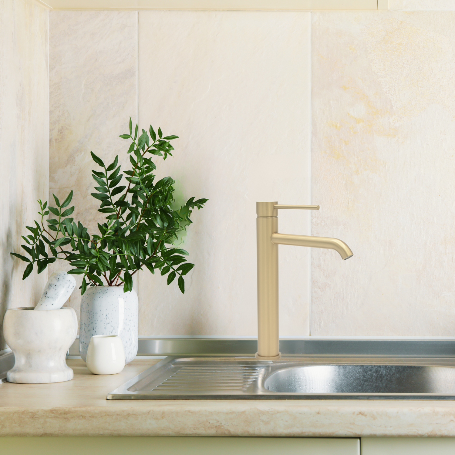 This elegant mixer features an extended height, providing ample clearance for vessel sinks and creating a striking focal point in your bathroom.